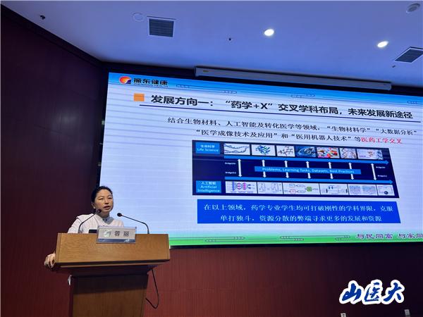 9月26日下午,智汇山医·人才汇系列讲座在我校中都校区图书馆一层多功能报告厅举行。山西振东集团研发总裁游蓉丽博士为师生作学术报告,药学院教师代表、学生代表,基础医学院学生代表参加,校党委人才工作部部长蔡蕊主持报告会。