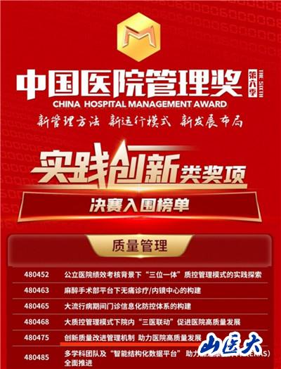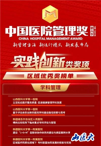 近日,由中国管理科学学会、中国管理科学学会医疗健康管理专业委员会指导,健康界主办的第六季中国医院管理奖获奖榜单公布。第一医院再传佳绩,有四个案例在质量管理和学科管理两个主题版块中脱颖而出。