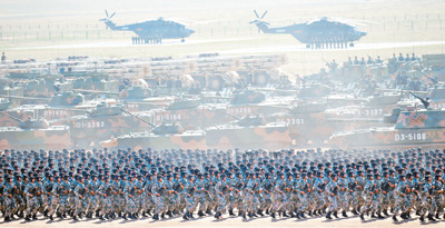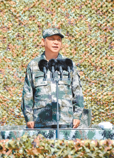 7月30日上午,庆祝中国人民解放军建军90周年阅兵在朱日和联合训练基地隆重举行。中共中央总书记、国家主席、中央军委主席习近平检阅部队并发表重要讲话。新华社记者兰红光摄