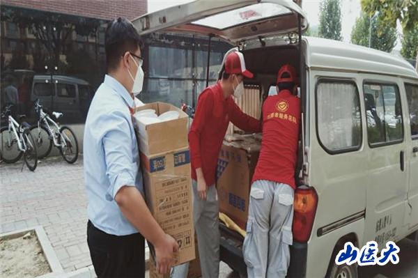 静态管理期间,新生需要送餐服务。食堂工作人员装盒打包后装车,一趟趟送餐到各宿舍公寓楼门前指定地点,再由网格员或志愿者发放给新生。一日三餐准时送达,奔波的身影见证了食堂工作人员为保障同学们准时用餐共同的付出和努力。