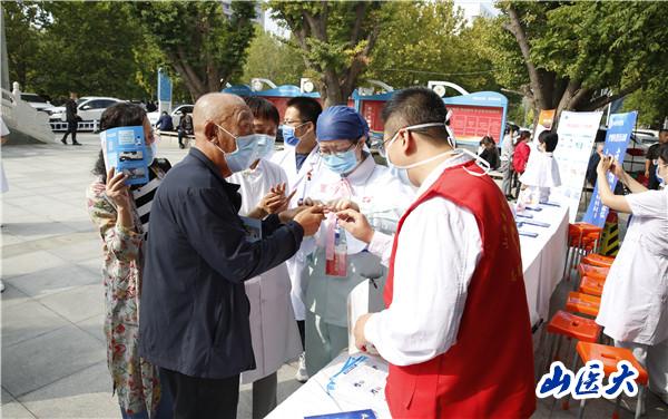 活动首日的护理科普宣传主题为“防灾减灾”“疫情防控”,活动地点在1号住院楼前广场。护理部组织护理人员开展了宣讲、示范、指导、义诊等活动。10名南丁格尔志愿者和6名团委志愿者协助活动顺利开展。
