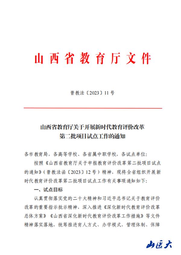喜讯!我校两个项目获批山西省新时代教育评价改革项目试点-憩读轩-思想政治教育平台