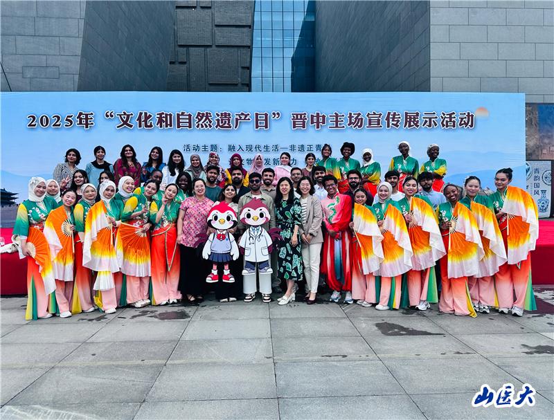 6月14日上午,应晋中市人民政府外事办公室、晋中市文化和旅游局、晋中市博物馆邀请,我校留学生参加了在晋中市博物馆广场举行的“2025年文化和自然遗产日晋中主场宣传展示活动”。国际教育学院党总支书记郭亚斌,副院长于晓霞出席,现场呈现精彩文艺表演并参与非遗文化互动体验,展现了中外文化交流的独特风采。