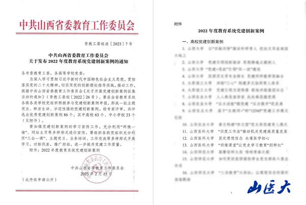 近日,省委教育工委公布2022年度教育系统党建创新案例评选结果,我校三个党建案例入选全省高校党建创新案例,分别是:第一临床医学院(第一医院)检验输血党支部的《坚定理想信念,永葆医学初心》,机关党委的《“四度工作法”推动机关党建高质量发展》,基础医学院本科生第一党支部的《“四维课堂”让党史学习教育“别样红”》。
