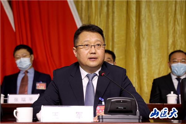 王军在第二次全体会议的讲话中指出,这次教职工代表大会是在全校深入学习贯彻党的二十大精神、全面推动学校高质量发展的关键时刻召开的一次十分重要的会议,进一步统一了思想,达成了共识,凝聚了学校发展合力。2023年是深入学习贯彻党的二十大精神的开局之年,是实施“十四五”规划承前启后的关键一年,也是贯彻落实学校第七次党代会精神、全面开启全国一流研究应用型医科大学建设新篇章的踔厉奋发之年。站在新的历史起点上,学校的发展目标更为明确,改革任务也更加艰巨,需要各位代表以及全校师生医护员工共同努力。 王军就学习贯彻好党的二十大精神,充分发挥教代会作用,落实好本次会议提出的各项目标任务,他提出三点意见:一是以习近平新时代中国特色社会主义思想为指导,坚定社会主义办学方向。坚持理论武装,推动学习宣传贯彻党的二十大精神走深走实,坚持党的领导,以高质量党建引领学校事业高质量发展,坚持铸魂育人,全面落实立德树人根本任务,办好人民满意的高等医学教育。二是以建设全国一流研究应用型医科大学为目标,加快推进学校高质量内涵式发展。按照学校第七次党代会的战略部署和学校对2023年工作的具体安排,深化改革创新谋发展,厚植家校情怀,敢于奋斗,善于团结,勇于担当,把美好蓝图落实落地落好,推进学校高质量发展。三是以坚持和完善教代会制度为保障,广泛凝聚智慧力量,服务学校发展大局。充分发挥教代会的政治优势和组织优势,积极发挥校工会的团结引领和服务作用,发挥代表履职尽责共谋发展的主人翁作用,推进学校治理体系与治理能力现代化,为学校事业高质量发展提供坚强有力的保障。