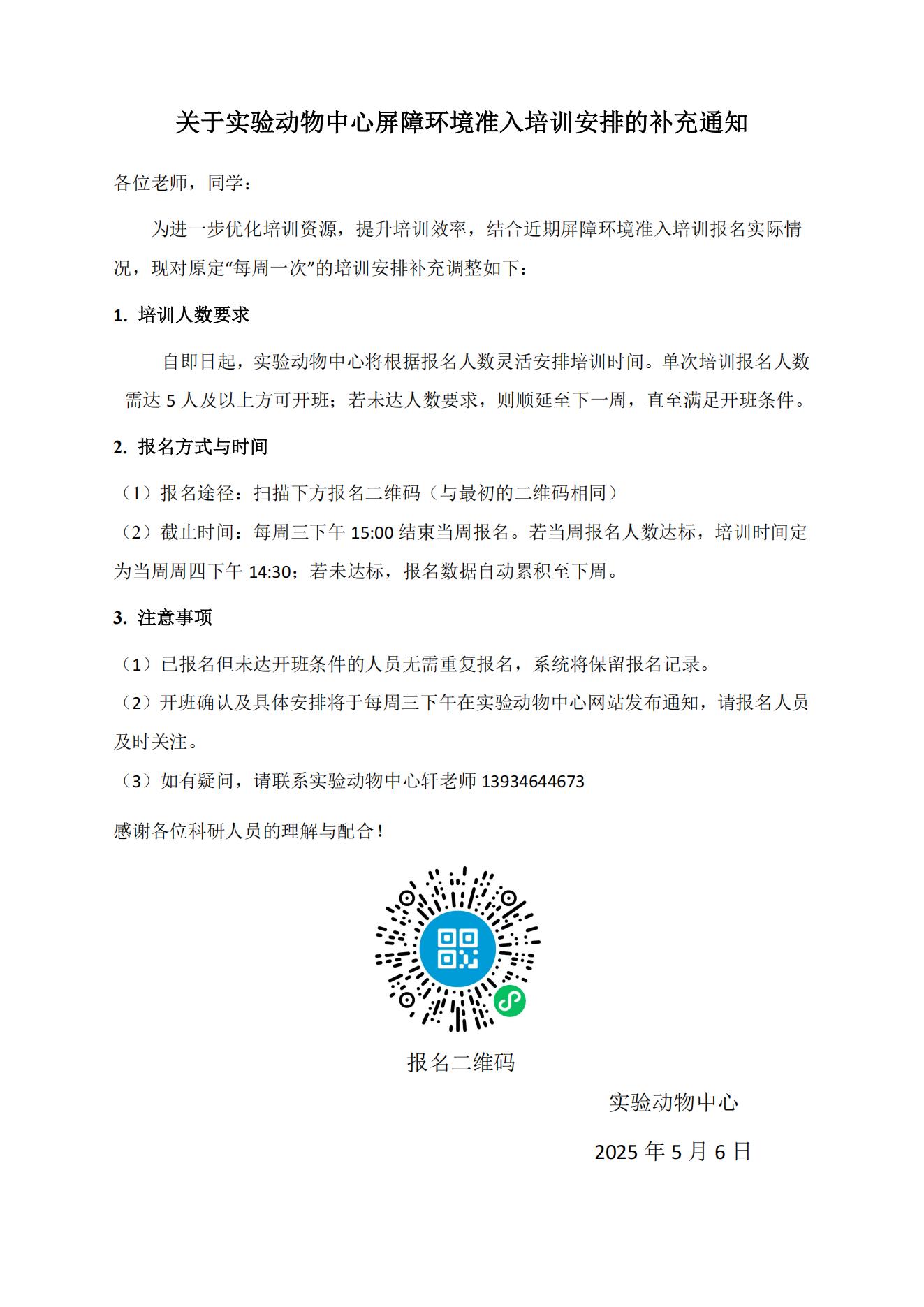 关于实验动物中心屏障环境准入培训安排的补充通知-实验动物中心