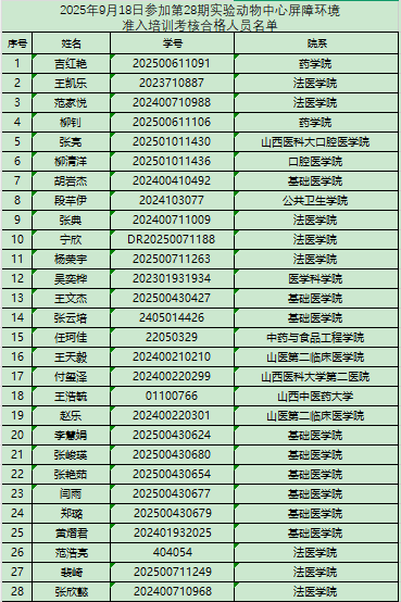 第28期屏障环境准入培训合格人员名单-实验动物中心