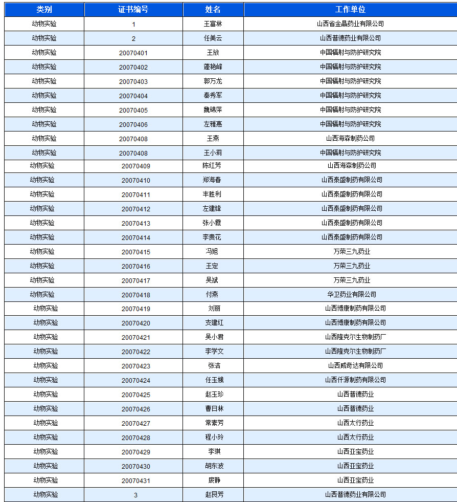 已迅人员信息(培训证)-实验动物中心