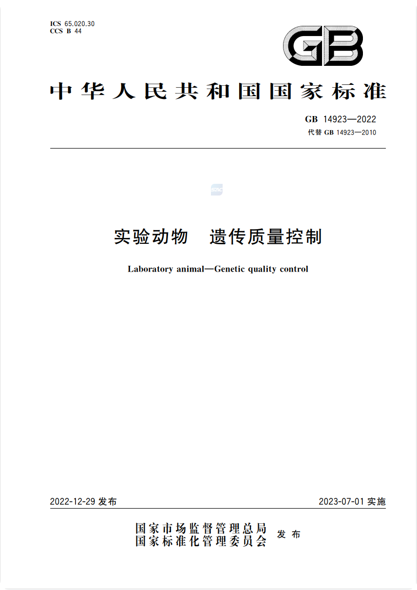GB 14923-2022 实验动物 遗传质量控制-实验动物中心