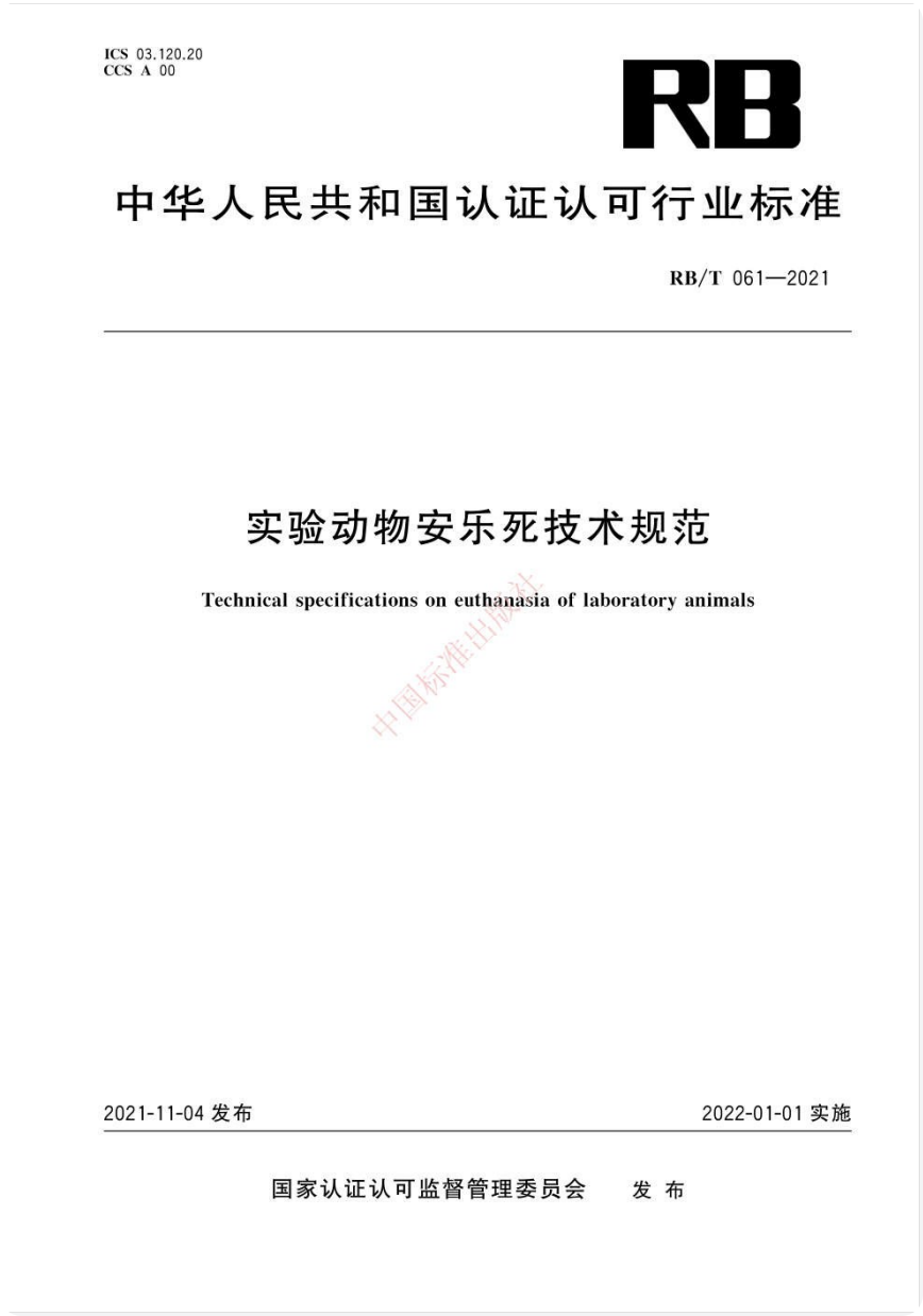 RB-T 061-2021 实验动物安乐死技术规范-实验动物中心