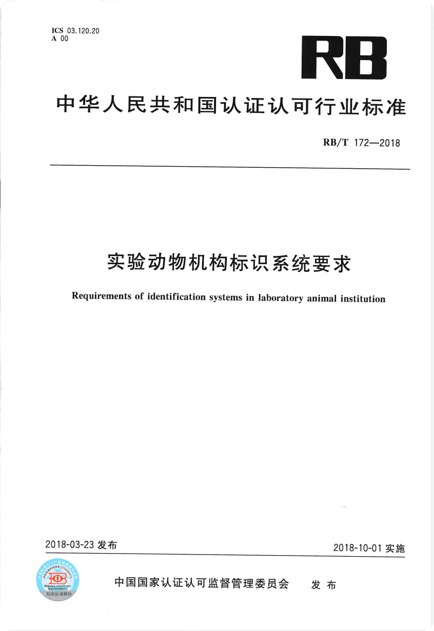 RB-T 172-2018 实验动物机构标识系统要求-实验动物中心