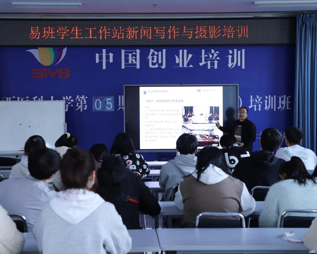 为进一步加强易班学生工作站新媒体工作者的新闻素养和宣传能力,3月8日下午,学生工作部在大学生活动中心101室举办了新闻写作与摄影主题培训,校党委宣传部王志新主讲,易班学生工作站王玉男主持,四十余名学生参加培训。