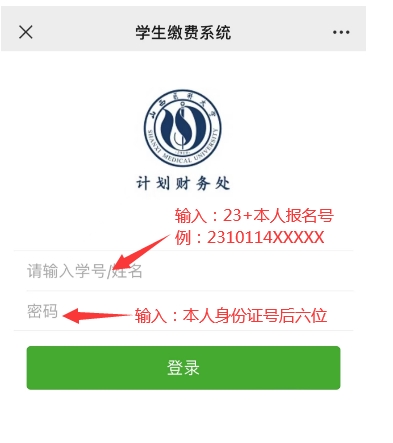 考生通过微信公众平台自助缴纳报名费:1.搜索微信公众号“国产亚洲精品美女久久久_99久无码中文字幕一本久道_亚洲成AV人影院_亚洲AV影院一区二区三区 狠狠躁夜夜躁人人爽天天不卡_国产激情久久久久影院老熟女_精品性高朝久久久久久久计划财务处”或扫描下方二维码;2.点击菜单,业务办理→学生缴费,在学号处输入年份+考生本人的报名号(例:2310114*****),初始密码为身份证号后六位,登录自助缴费系统(见图例);3.点击“我要缴费”,选择缴费年度(2023),确认缴费信息,通过银联在线进行支付(任何有银联标志储蓄卡均可)。