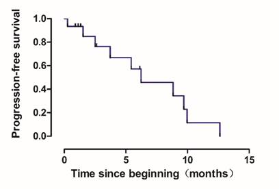 图1阿帕替尼联合替吉奥治疗患者PFS的生存分析(n=15)