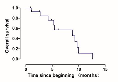 图2阿帕替尼联合替吉奥治疗患者OS的生存分析(n=15)