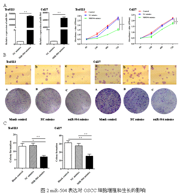 2 miR-504表达对OSCC细胞生物学行为的影响