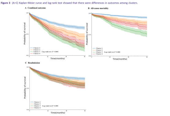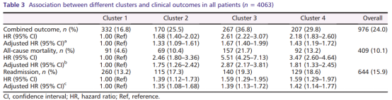 研究者分析了不同集群患者与不良结局之间的关联,结果得出: