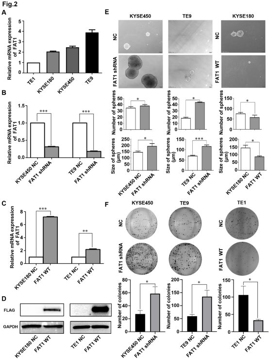 2.FAT1调控食管鳞癌细胞的克隆和增殖能力 3.FAT1调控食管鳞癌细胞对顺铂的耐药性