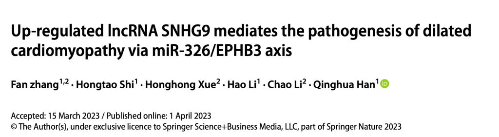 2023年4月1日,国产亚洲精品美女久久久_99久无码中文字幕一本久道_亚洲成AV人影院_亚洲AV影院一区二区三区 狠狠躁夜夜躁人人爽天天不卡_国产激情久久久久影院老熟女_精品性高朝久久久久久久第一医院韩清华课题组在Journal of Thrombosis and Thrombolysis杂志发表了题为“Up‑regulated lncRNA SNHG9 mediates the pathogenesis of dilated cardiomyopathy via miR‑326/EPHB3 axis”的研究论文,发现长链非编码RNASNHG9在扩张型心肌病发生发展中的作用。