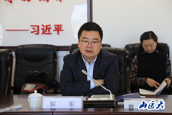 会上,解军副校长介绍了我校的基本情况、学科学位建设和研究生教育教学的现状。他指出,学校始终将建设一流医学学科、培养一流医学人才、满足人民群众健康需求和服务地方经济社会发展作为学校办学的重要使命,学校在学位授权审核、重点学科建设和研究生培养方面取得了显著进步。目前,全省正在开展“改革创新、奋发有为”大讨论,学校将以国家双一流建设为契机,在省教育厅的正确领导下,对标对表,认真准备,争取在第五轮学科评估和新一轮学位授权审核中再次取得突破。