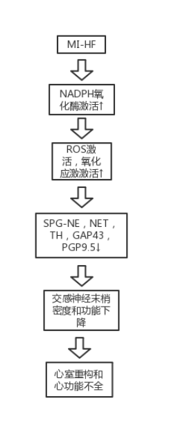 在心力衰竭(CHF)中,交感神经系统被激活,其特征是血浆去甲肾上腺素(NE)浓度升高和心脏NE释放增加。相反,心力衰竭时心脏的交感神经末梢密度和功能降低,表现为心肌中儿茶酚氨的组织荧光谱的降低和NE的耗竭。心脏交感神经末梢的异常与充血性心力衰竭(CHF)时心脏交感神经的过度激活共同导致心功能受损和心律失常的发生。
