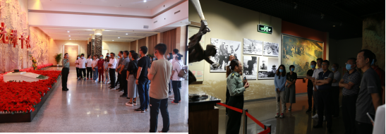 为了让党史学习教育走深走实,6月4日下午研究生学院直属党支部,在书记曹小清、院长成晓龙的带领下,怀着无比激动的心情来到红色圣地武乡八路军纪念馆,缅怀革命先烈,重温入党誓词,再撞信念之火,赓续时代担当。跟着讲解员的脚步,了解八路军将士在太行山缺衣少穿、筚路蓝缕但依然信念坚定、不辱使命,领悟太行精神的内涵:坚定正确的理想信念,始终保持对党对人民对事业的忠诚;坚持执政为民的政治立场,始终保持与人民群众的密切联系;锤炼坚韧不拔、百折不挠的品格,始终保持知难而进、奋发有为的精神状态;坚守党的政治本色,始终保持艰苦奋斗的优良作风。随着讲解员饱含深情的介绍,同事们不由得潸然泪下,他们不是被故事情节所感动,而是被先辈们为革命忠贞的信仰与不懈地求索而打动。只有主义的力量与道路的向往才是这种行为最准确的回答与最完美的诠释。